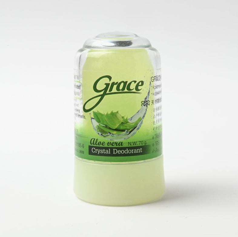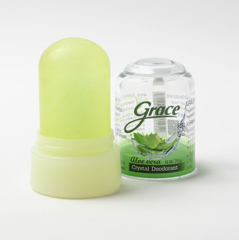 Дезодорант кристалл Grace (Грейс) алоэ вера — природный дезодорант, состоящий из исключительно натуральных компонентов. Не содержит сушащего кожу спирта, вредных для здоровья парабенов и нарушающего нормального функционирование потовых желез хлоргидрата алюминия. Работает за счет минеральных солей, обладающих естественным антибактериальным действием, и не допускает возникновения неприятного запаха.