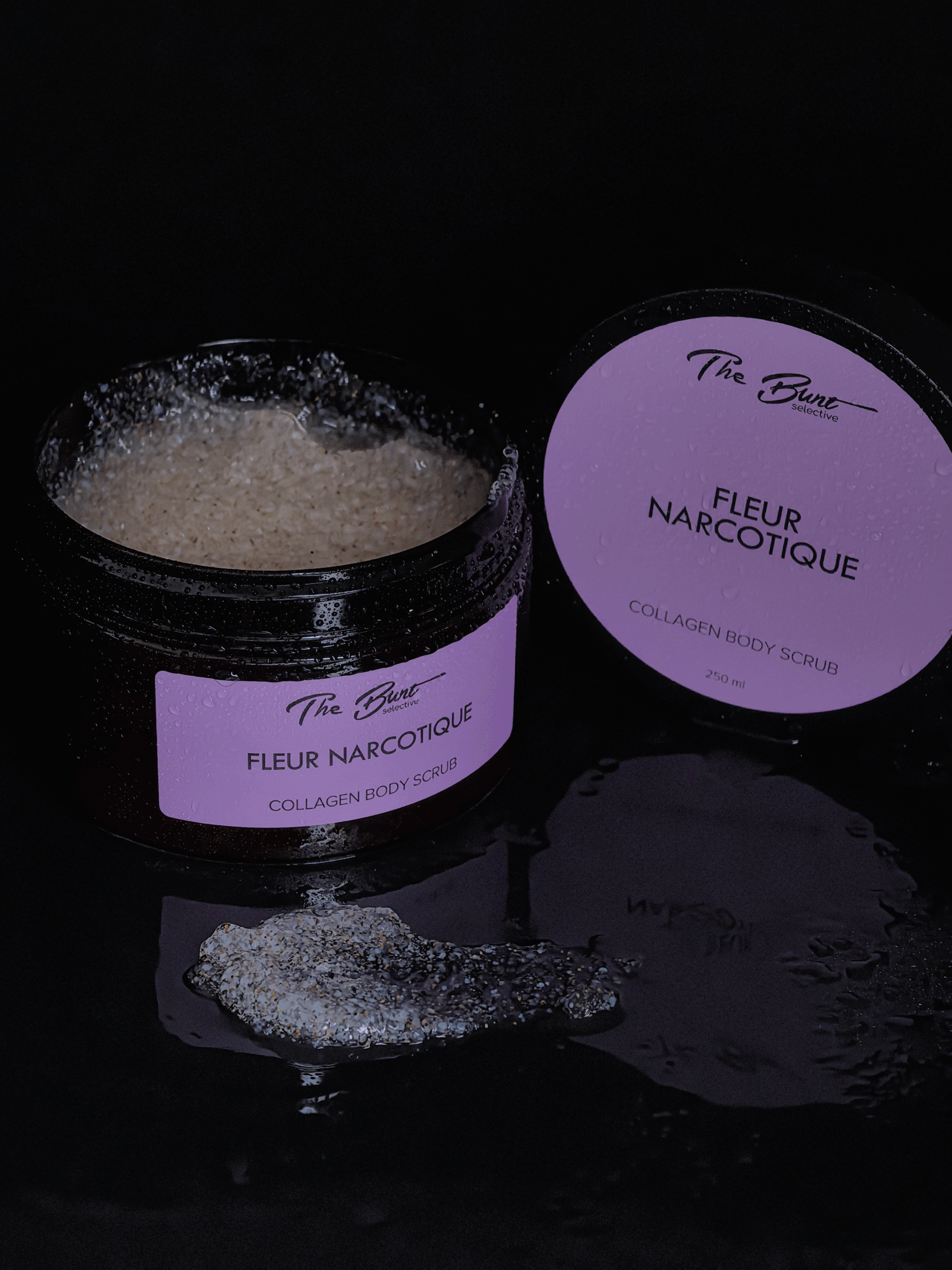 Коллагеновый гелевый скраб Fleur Narcotique содержит натуральные ингредиенты, которые мягко и бережно отшелушивают кожу, удаляя омертвевшие клетки и улучшая её текстуру, оставляя на ней легкий цветочный аромат с древесными нотами.