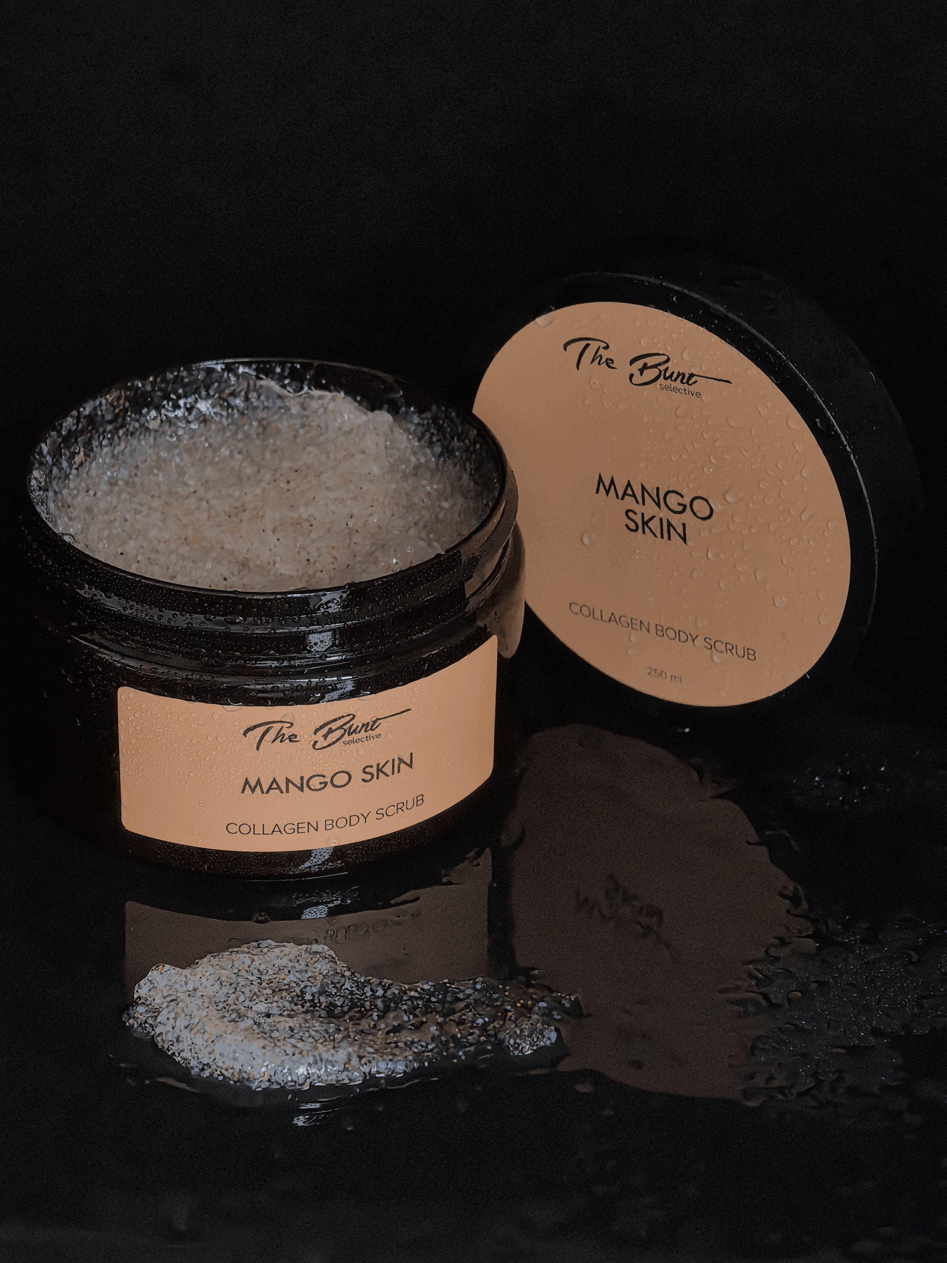 Коллагеновый гелевый скраб Mango Skin содержит натуральные ингредиенты, которые мягко и бережно отшелушивают кожу, удаляя омертвевшие клетки и улучшая её текстуру, оставляя на ней легкий аромат сочного спелого манго, окутанного нотами нежного жасмина, чувственной пачули и черного перца.