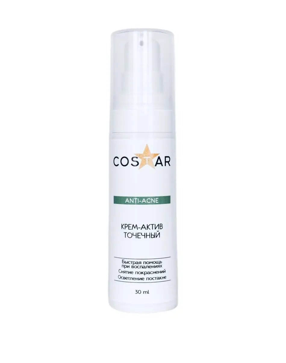 Крем-актив точечный для лица ANTI ACNE Крем-актив точечный Anti-Acne – это SOS-средство для быстрого и эффективного решения проблемы локальных воспалений. Разработанный для целенаправленного воздействия, этот крем-актив быстро успокаивает, подсушивает и способствует заживлению прыщей, предотвращая появление постакне.