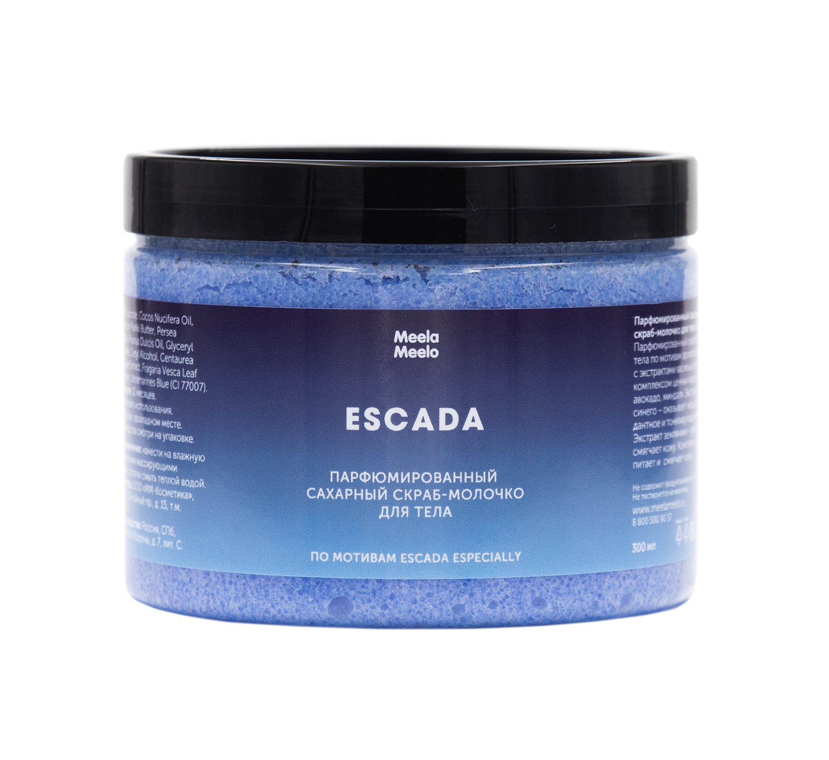 Парфюмированный скраб-молочко для тела по мотивам аромата Escada Especially с эстрактами василька синего, земляники и комплексов ценных масел кокоса, ши, авокадо, миндаля.