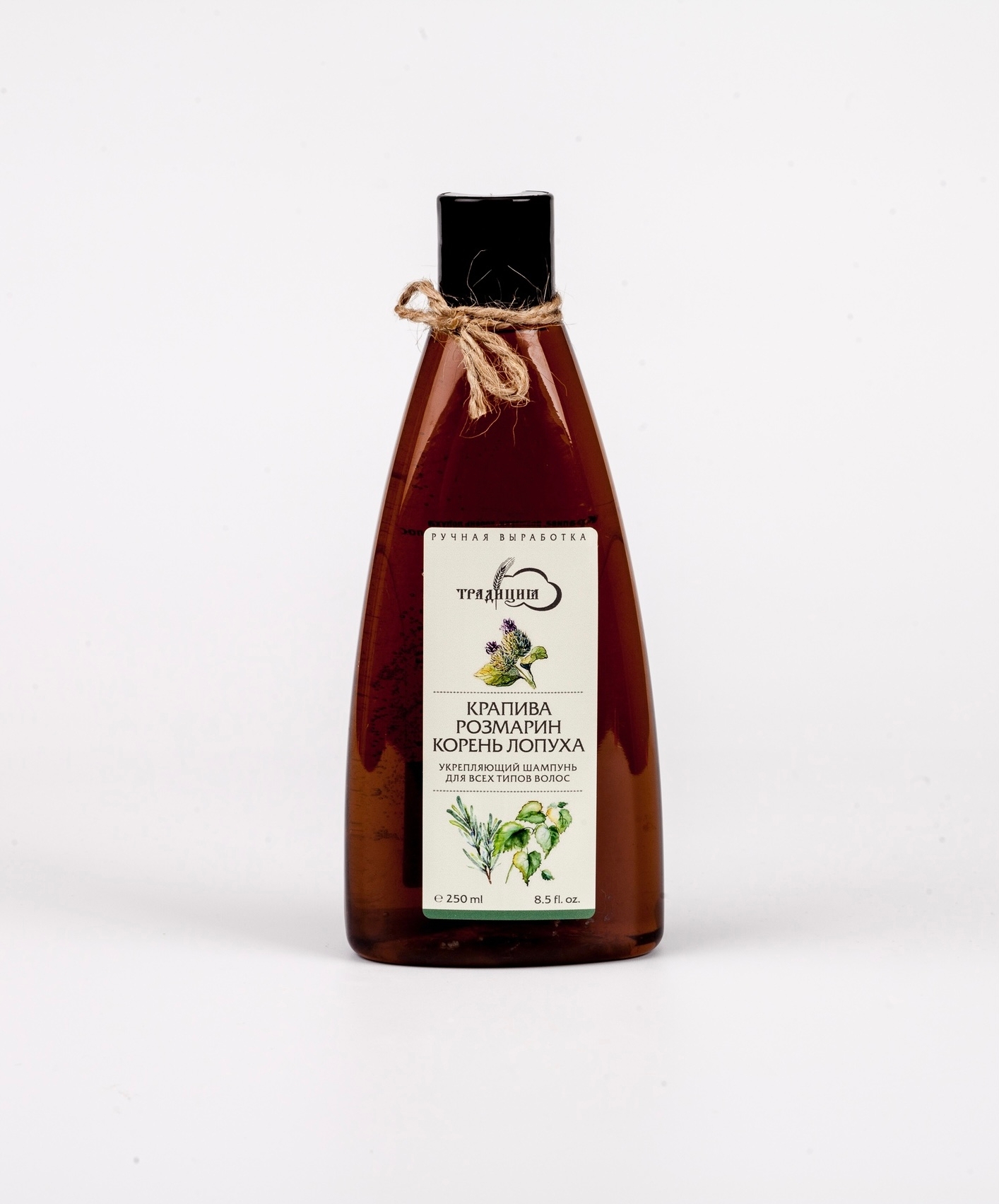 Бессульфатный натуральный БИО шампунь “Крапива, розмарин, корень лопуха” является эффективным средством против выпадения волос всех типов волос, деликатного очищения кожи головы. Шампунь ручной работы сварен на крепких отварах лекарственных трав, содержит репейное масло, эфирное масло розмарина, крапиву, масло зверобоя, эфирное масло эвкалипта, касторовое масло.